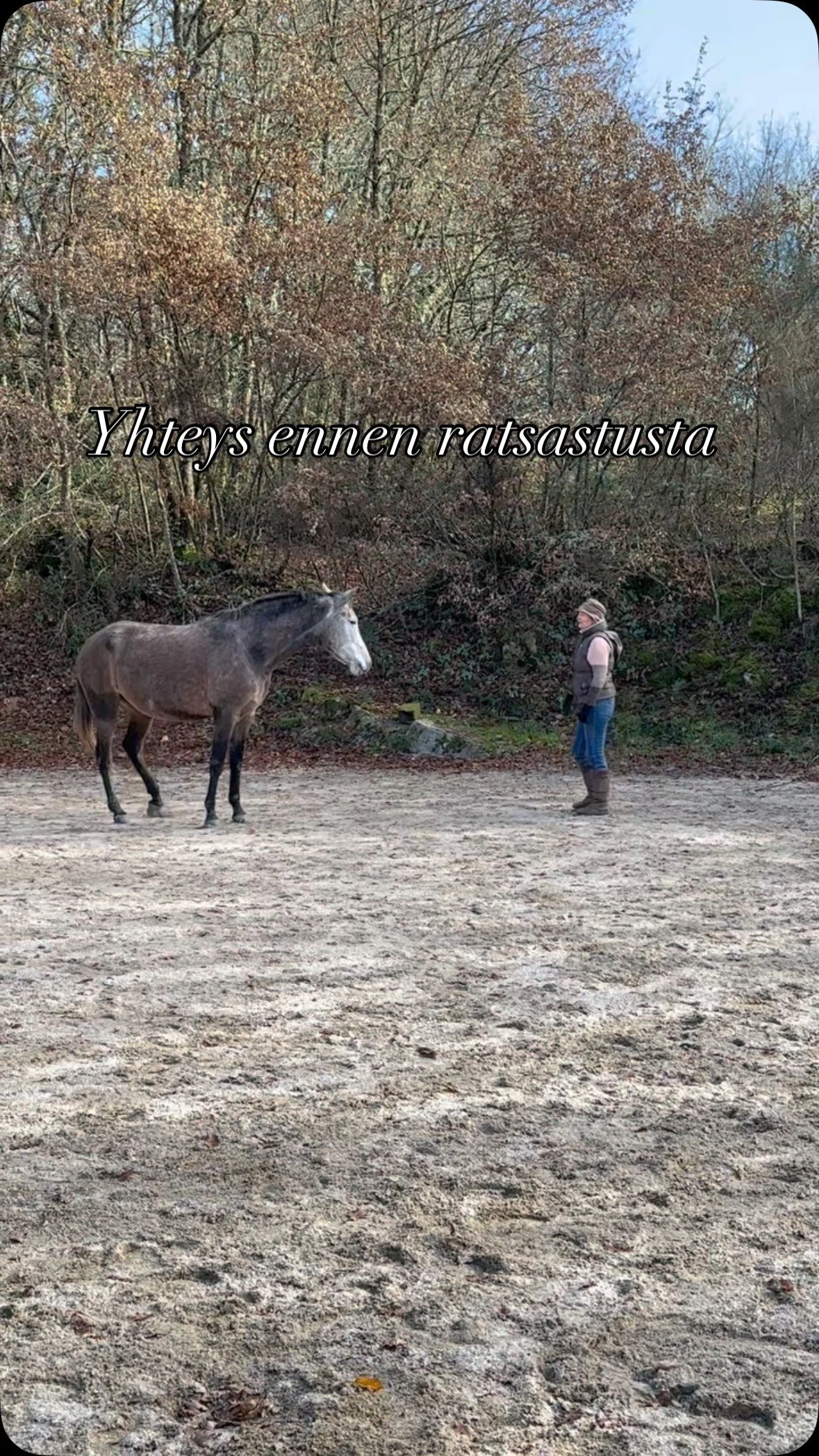 “Löysin rauhaa ja yhteyttä hevoseen, jätin suorittamisen jota en edes ymmärtänyt tekeväni niin kovasti. Se rauha ja keskittymisen löytyminen oli huikea hetki.“